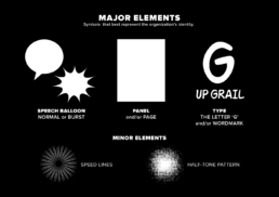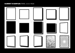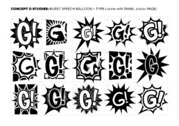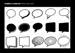 Borrowing elements from comics, we considered using 3 major ones (speech balloons, panels, and type/letters) and 2 minor ones (speed lines, and half-tone pattern).